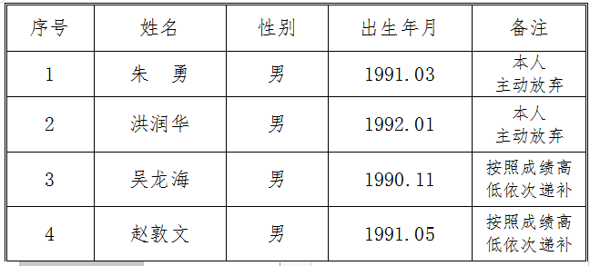 因出現(xiàn)部分考生自愿放棄情況,我公司對入圍體檢人員按照成績排名依次進行遞補。現(xiàn)將交投集團司屬公司銅陵市江北公路管理有限責(zé)任公司收費員、監(jiān)控員崗位招聘遞補入圍體檢人員名單公告如下: