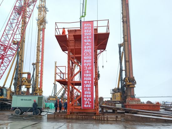 “此次灌注的是3號(hào)主墩19號(hào)樁。3號(hào)主墩共有68根鉆孔樁,每根樁直徑3.0米,樁長(zhǎng)95米,成孔深度達(dá)122.5米,入巖深度約71.4米,鉆進(jìn)施工采用徐工XR580HD、XR600E和XR700型旋挖鉆機(jī)逐級(jí)擴(kuò)孔鉆進(jìn)成孔。”中鐵大橋局G3銅陵長(zhǎng)江公鐵大橋項(xiàng)目一分部總工程師宋海濤介紹,G3銅陵長(zhǎng)江公鐵大橋是世界首座雙層斜拉-懸索協(xié)作體系大橋,3號(hào)墩和4號(hào)墩是大橋的兩個(gè)主墩,承載988米的主跨一跨過(guò)江。